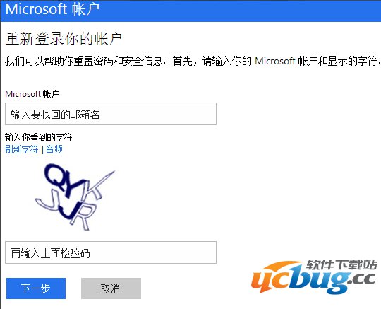 在弹出的页面中,直接输入要找回密码的邮箱帐号(win8或是win10的登陆用户名也就是邮箱),再输入检验码——下一步