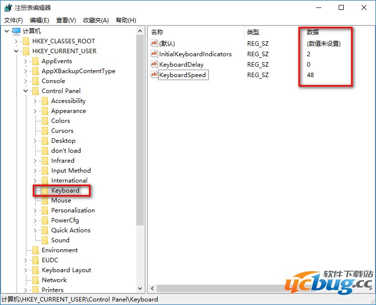 KeyboardSpeed(是键盘速度),设置为“48”(根据自己的需要,也可以设置为其它值)