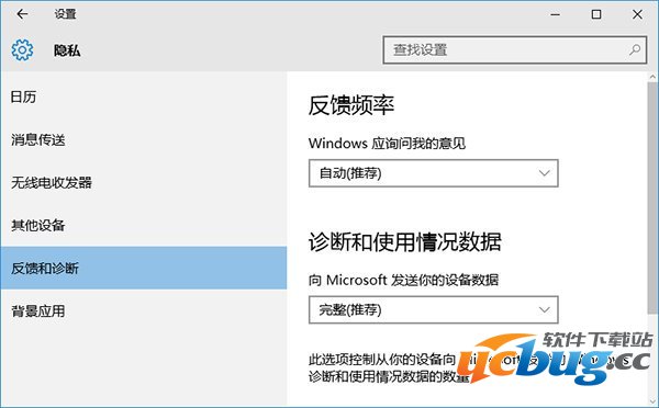 打开系统设置—隐私—反馈和诊断,将“向Microsoft发送你的设备数据”选项设置为“完整(推荐)”即可。