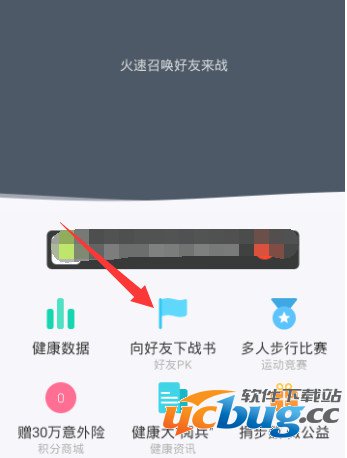 进入健康界面,可以看到具体的相关功能,点击【好友PK】