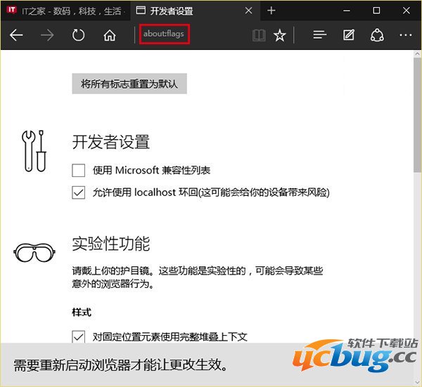 1、打开Edge浏览器后,在地址栏输入about:flags后回车