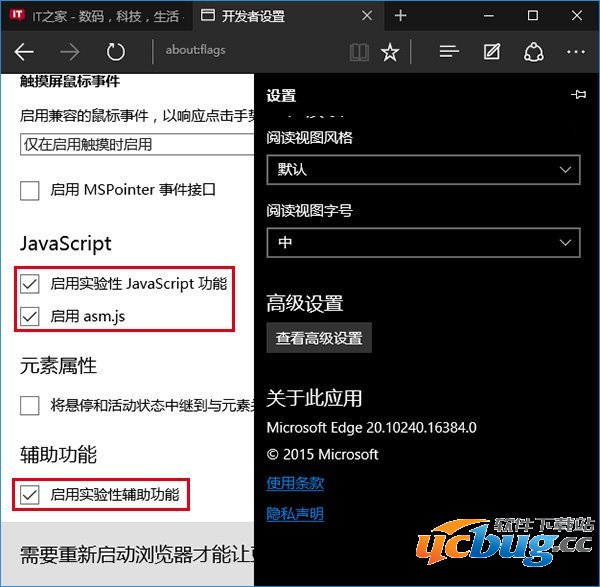 根据微软官方介绍,勾选这三个项目后,Edge浏览器的流畅度会明显提升。需要注意的是,以上三个选项适用于Win10正式版10240的Edge浏览器,在最新的Win10预览版10532中,没有“启用asm.js”项,因此相关用户勾选其他两项即可,如下图——