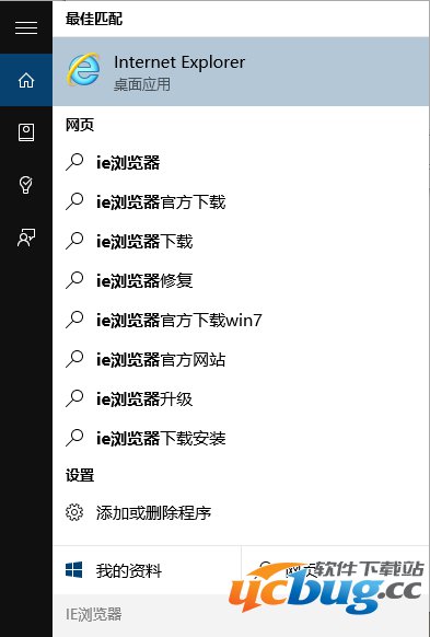 在小娜处输入IE浏览器打开IE