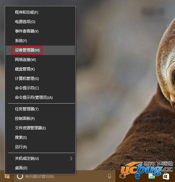 1、在开始按钮单击右键后找到“设备管理器”,点击进入,如下图——