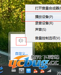 1.在桌面右下方(任务栏右边)找到一个喇叭图标,右击它,在弹出的右键菜单中找到并打开【播放设备】菜单;