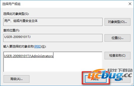 点击确定以后,我们可以看到本机登录用户名显示在检查名称栏中,点击:确定;