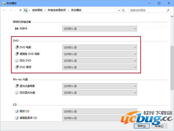 ③ 点击“保存”后,再次放入DVD光盘后就可以用Win10版DVD播放器自动播放了