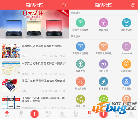 奇酷社区:登陆奇酷账号就可以在奇酷社区里看到奇酷的相关资讯,在奇酷论坛中,还有包括版本发布、BUG反馈、新功能讨论等一些列板块可供参与。