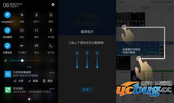 截屏除了点击【截屏】键外,可用常规的【电源键】+【音量-】键的组合,还可以直接用三只手指在屏幕上向下滑动完成。