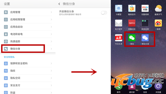9、360奇酷手机的最强黑科技“双微信”功能。在【设置】中找到【微信分身】,点击开启后,原始的微信旁边会出现一个蓝色的名为“ 微信分身”的应用。这两个微信可同时登陆不同号码,且双方不共享数据,独立运行。