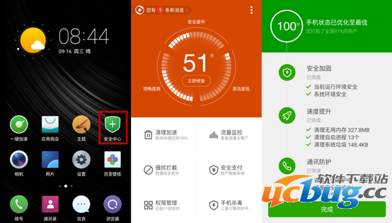 6、点击首界面的【安全中心】,进入后,可在该界面进行清理加速、流量监控、骚扰拦截、安全支付、权限管理、手机杀毒等功能。点击【立即修复】,可立刻为手机进行清理优化。