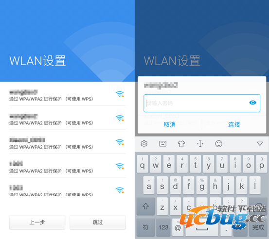 2、设置网络,如有可用WiFi,选择并输入密码,链接。如没有,点击【跳过】。