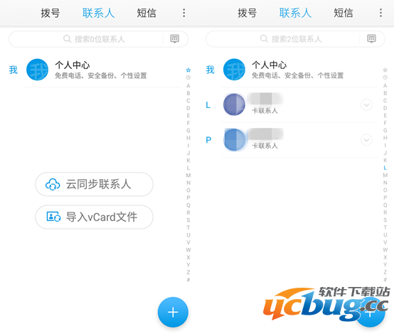 5、点击进入设置通讯录。在这里可以选择【云同步联系人】同步云端通讯录中的联系人名单,或者【导入vCard文件】导入名单。如果SIM卡中存储过联系人,系统会自动显示。