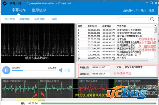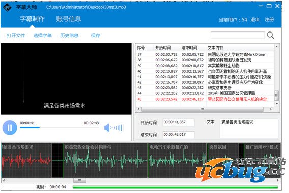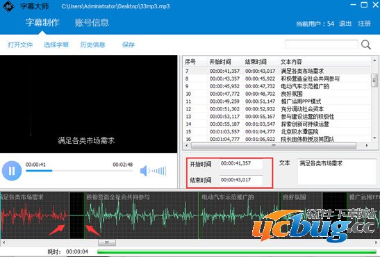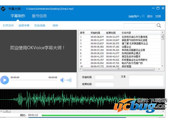 依次导入音视频文件和文本文件后,点击“确认”,字幕大师即可开始对齐工作。稍等片刻,页面下进度条完成后,时间轴即可生成,如下图: