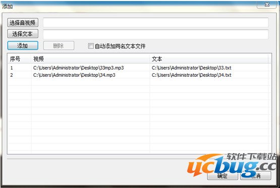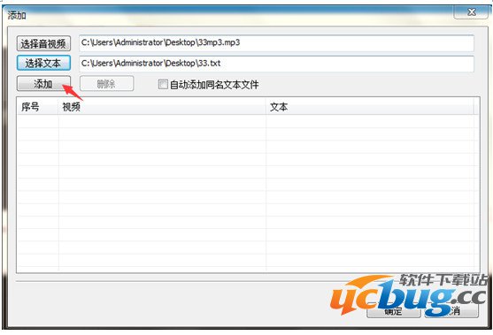然后依次选择音视频文件和文本文件(注:二者需是对应关系),点击“添加”