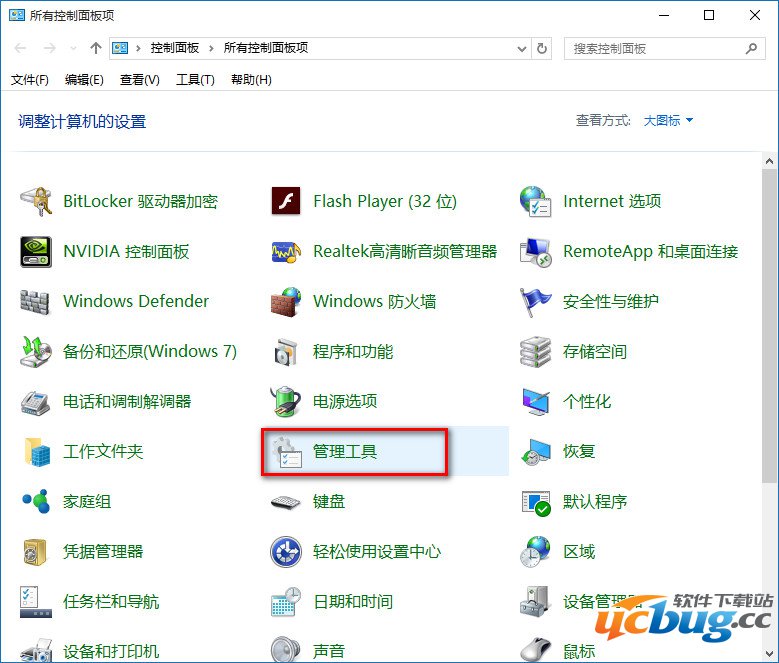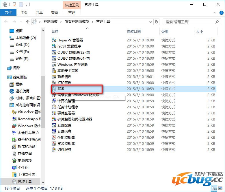打开控制面板进入管理工具