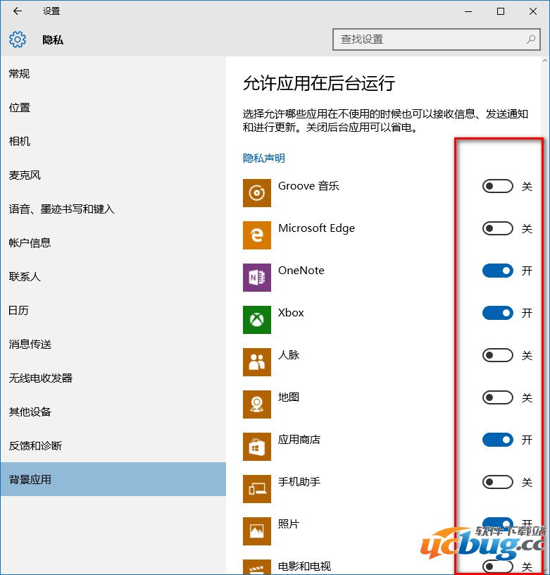 在背景应用中将打开的项关闭,这样便可以禁止它们在后台悄悄运行了。