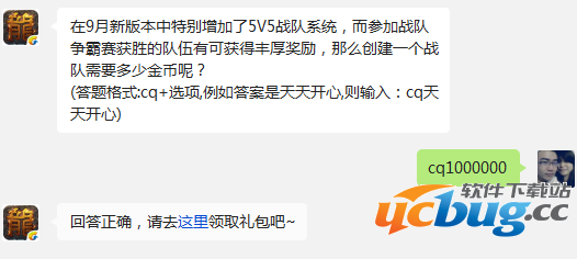 创建一个战队需要1000000金币喔,所以9月24日的热血传奇手机版每日一题答案就是cq1000000,最后希望所有的小伙伴都能领取每日一题的奖励。