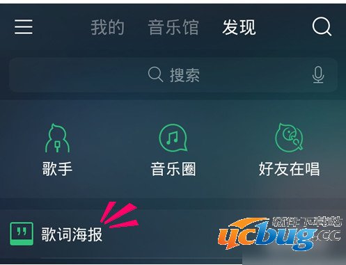 点击切换到[发现],你在下面就能找到[歌曲海报]了,下面就要准备创建海报了。