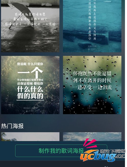 点击进入后你可以看到系统推荐的几款热门海报样式,你也可以点击[制作我的歌词海报]从零开始创作海报。