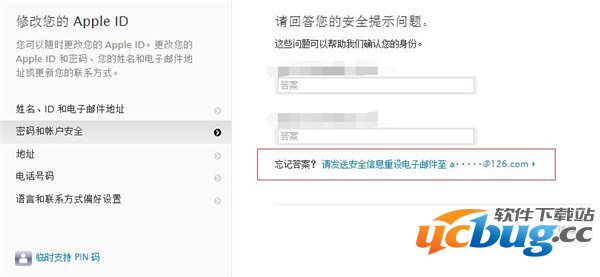 7.如果你并未设置有安全邮箱或者安全邮箱已经无法使用,则需要通过苹果官方的客服才能重置安全提示问题。
