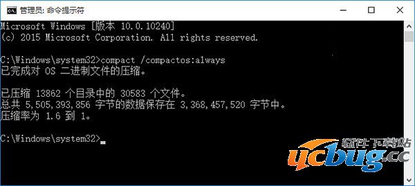 熟悉DISM映像部署和管理工具的朋友可以使用该工具以Compact压缩方式安装Windows10,除此之外,用户也可以在系统安装完成后随时开启Compact压缩,已经有一些第三方工具提供了这一功能,如果不借助第三方工具的话也只需要一条命令即可,方法如下: