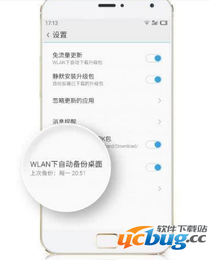 flyme4.5以下的版本,需要到应用中心—我的应用—设置,开启「WLAN下自动备份桌面」,其余步骤与4.5基本相同