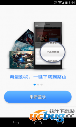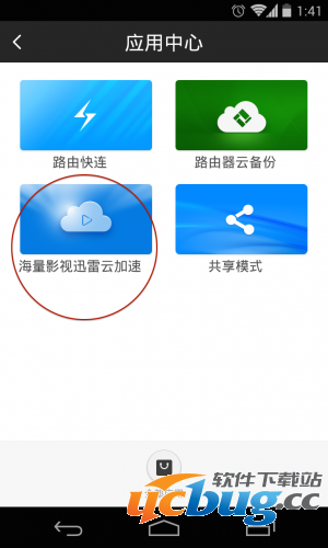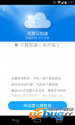 2.选择“应用中心→海量影视迅雷云加速”,点击“用迅雷云播登录”,手机开始下载安装云播App。安装完成后,再次点击“用迅雷云播登录”,登录迅雷账号(去注册),即可将迅雷账号与小米路由器绑定。