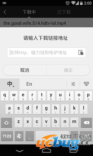 3.将文件或影片的下载地址粘贴到下面的文本框,选择“确定”即可。