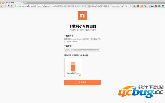 3.在新页面中可以看到自己绑定的小米路由器,此处为“Xiaomi.LeiPhone”,点击“立即下载”。