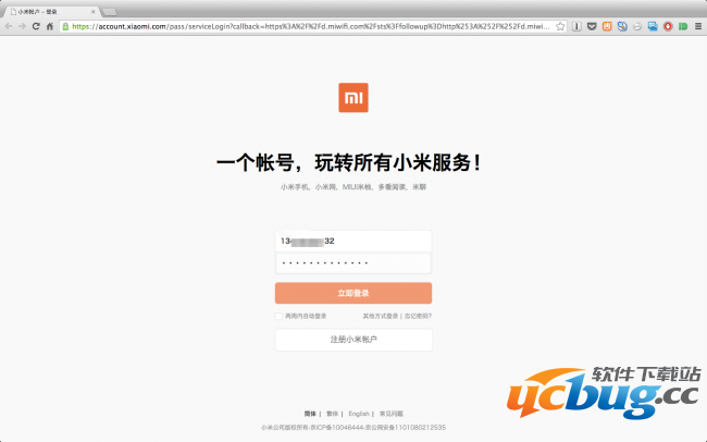 2.在弹出的页面中登陆自己的小米账号。(去注册)