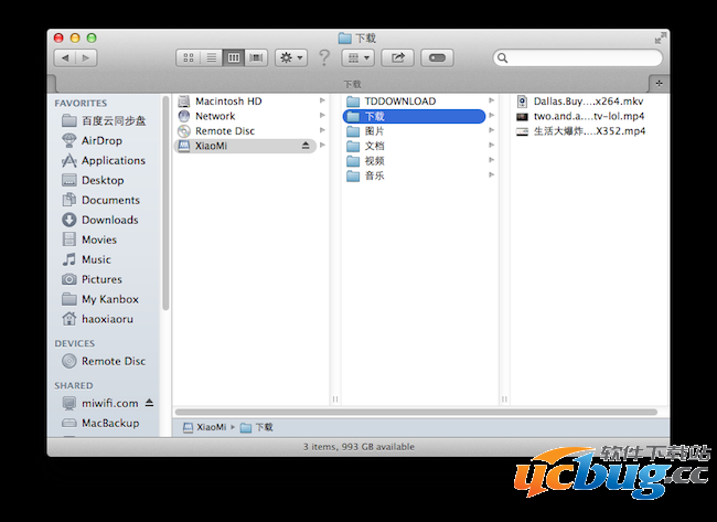 2.在PC或Mac上安装小米路由器客户端(在路由器管理界面miwifi.com上可下载),电脑上会出现名为Xiaomi的虚拟盘符,在其中找到“下载”或“TDDOWNLOAD”文件夹中下载好的影片,直接播放或者复制到本机即可。