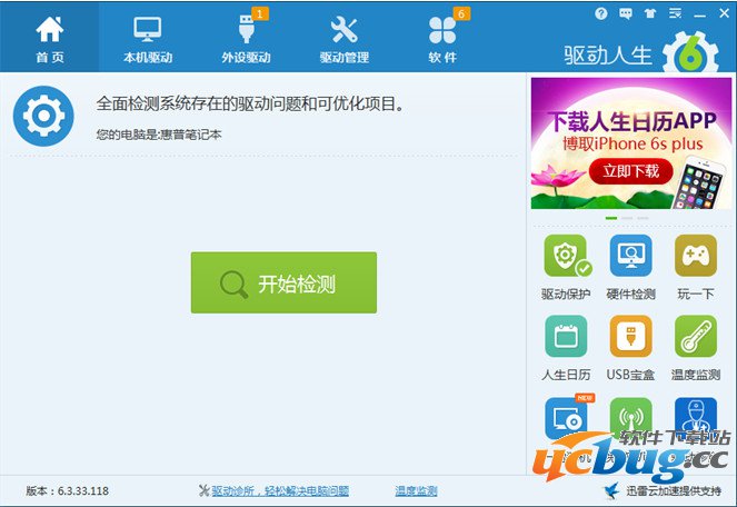 首先,下载安装一个专业的驱动软件,比如驱动人生6,安装好软件后,打开主界面,建议点击“开始检测”按钮,检测下当前电脑驱动是否有异常或需要更新。如检测出有驱动需要更新,建议可以不点击“立即更新”按钮更新,因为驱动程序并不是最新的就是最好的,只要自己的电脑运转正常,不需要更新驱动也是可以的。