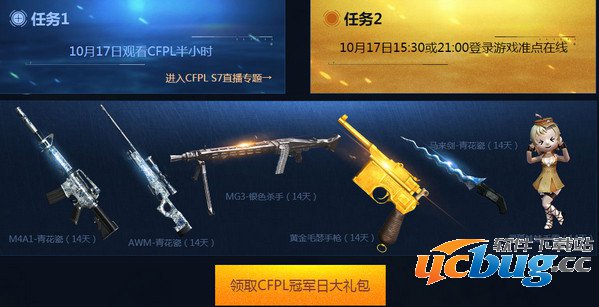 2、玩家如果在10月17日完成了上面两个任务,则次日可以再额外领取一份CFPL荣耀礼包。