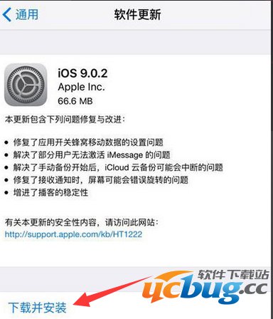 这时系统将自动进入软件更新的搜索,搜索完毕之后,将可以看到本次iOS 9.0.2的更新包大小,其实也并不是太大,60几M的容量大小,我们直接点击下载安装按钮