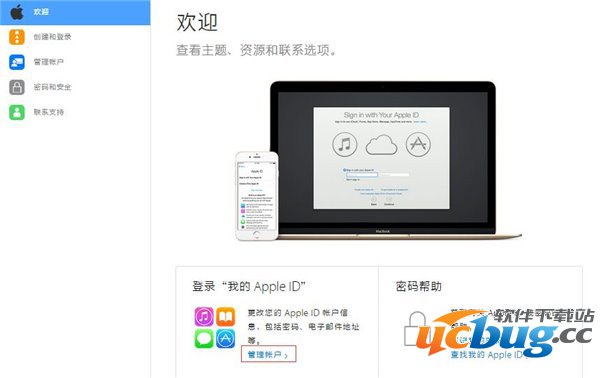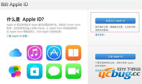 3.在我的Apple ID界面点击“管理我的Apple ID”,并输入自己的Apple ID帐号和密码,然后选择登录。