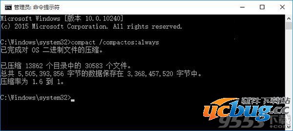 熟悉DISM映像部署和管理工具的朋友可以使用该工具以Compact压缩方式安装Windows10,除此之外,用户也可以在系统安装完成后随时开启Compact压缩,已经有一些第三方工具提供了这一功能,如果不借助第三方工具的话也只需要一条命令即可,方法如下: