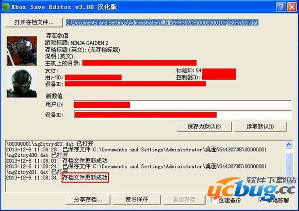 有些存档只有一个文件,忍龙2这个存档有3个,所以这个步骤得重复3次,将每个文件的机器编号都修改为本机可认。