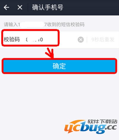 第四步:在“确认手机号”这个界面,系统会发送一个短信校验码到需要开通服务的手机号码上,把接收到的校验码填写在这里,然后点击“确定”