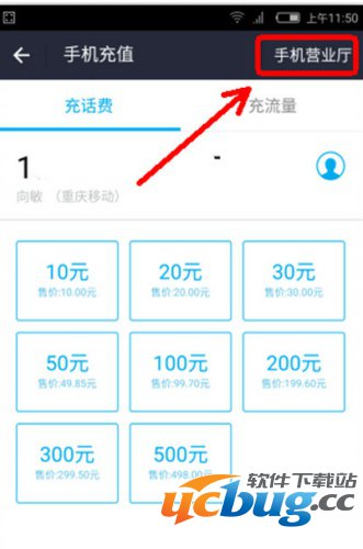第二步:进入手机充值界面后,我们不需要充值,直接点击界面右上角的“手机营业厅”即可。