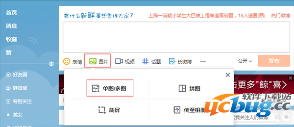 3. 基本上,到了这一步已经接近尾声了,只要将这张图片上传到微博即可。打开微博,点击图片 > 单图/多图,在弹出的窗口中选中刚刚生成的 GIF 动图,就可以发布了。