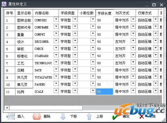 其中定义属性块的时候,类型一样的可以直接通过复制获得。将所有需要填写的地方定义好了之后,最终得到的标题栏样式如下: