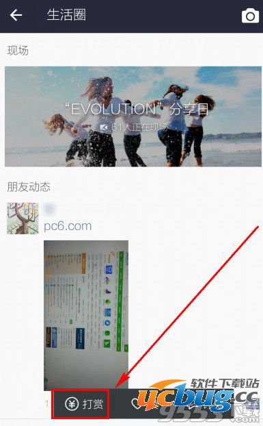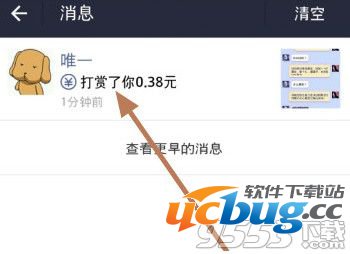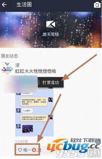 5、现在看看对方怎么接收打赏,查看打赏金额。朋友界面的生活圈会提醒有新的消息。
