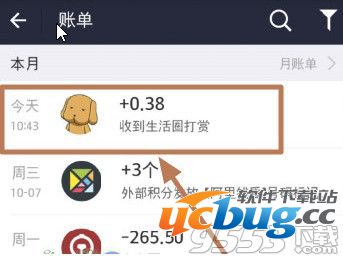 9、进入支付宝账单中可以看收到生活圈打赏,赏金是即时到账的。
