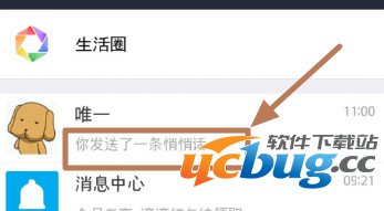 5、在朋友界面,可以看到发送了一条悄悄话,当对阅读后,这个记录也会随之消失。
