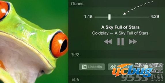 5、此后我们再用 iTunes 播放音乐时,便可以直接在通知中心来控制播放歌曲了,可以换歌曲,可以调节进度。