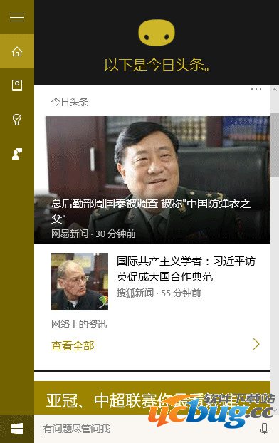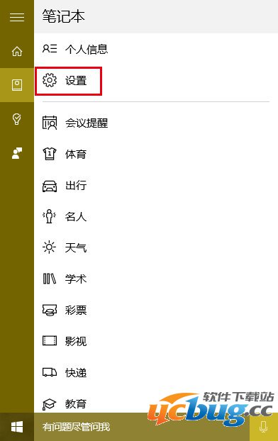 1、点击Cortana搜索栏,在左边栏选择第二个图标“笔记本”,如下图——