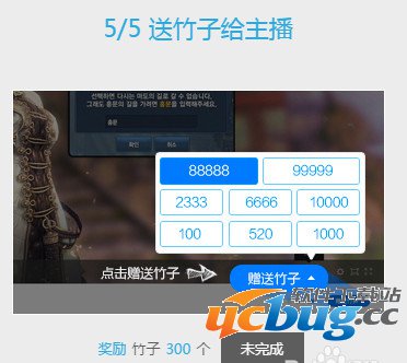 有了一定的竹子之后,就可以送给我们的主播了,送竹子的地方可以送100的竹子,也可以送很多(批量)赠送,几千几万等等,有一个任务就是送竹子给主播哦。