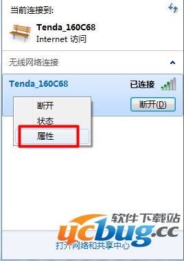 步骤二:当wifi万能钥匙成功精简热点密码时,任务栏右下角就会自动出现“无线网络连接成功”的图标,点击该图标,在打开的“无线网络连接”窗口中,右击要查看密码的无线连接项,从弹出的菜单中选择“属性”。