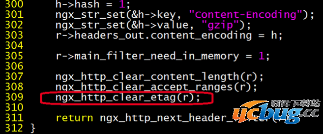 文件中约309行左右的ngx_http_clear_etag(r);一行注释掉或删掉。如下图